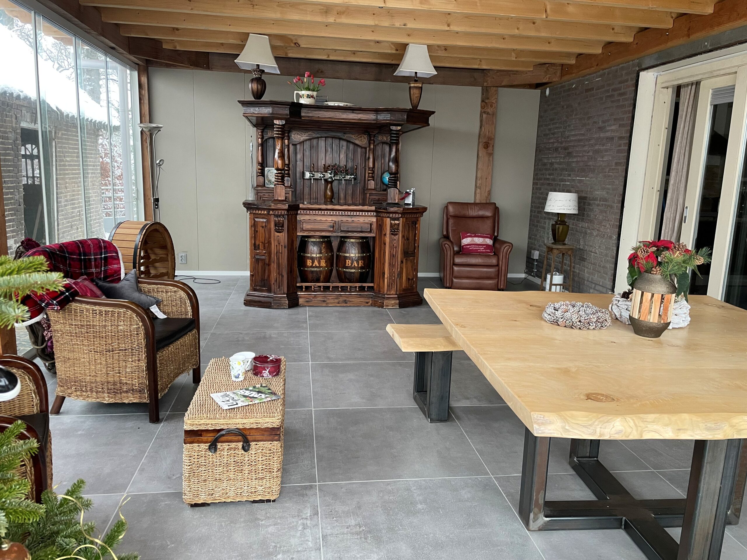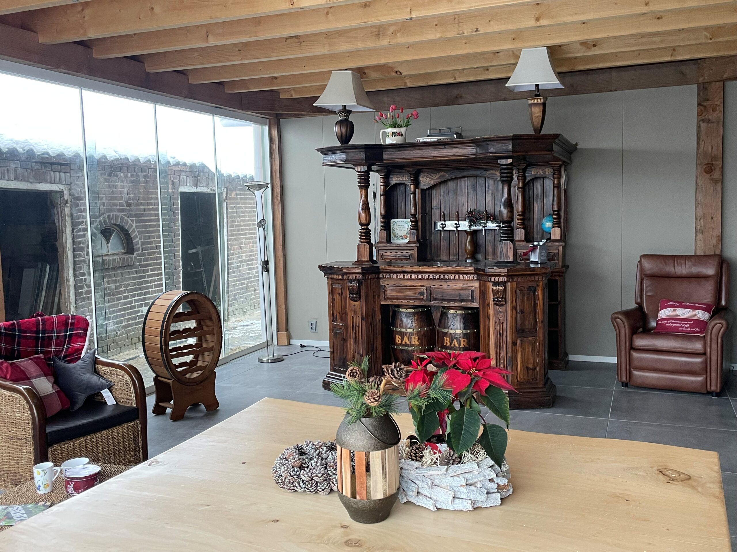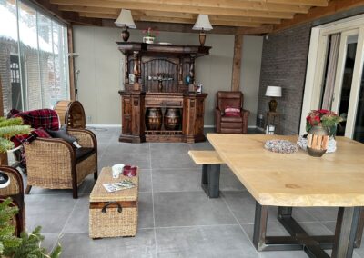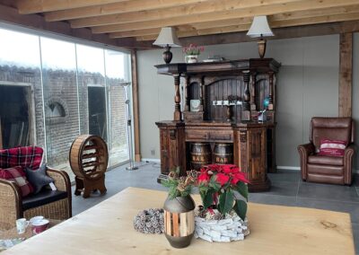 Beneden voorzien van een fraaie keuken met eetgelegenheid voor 15 man/vrouw, inclusief palletkachel.